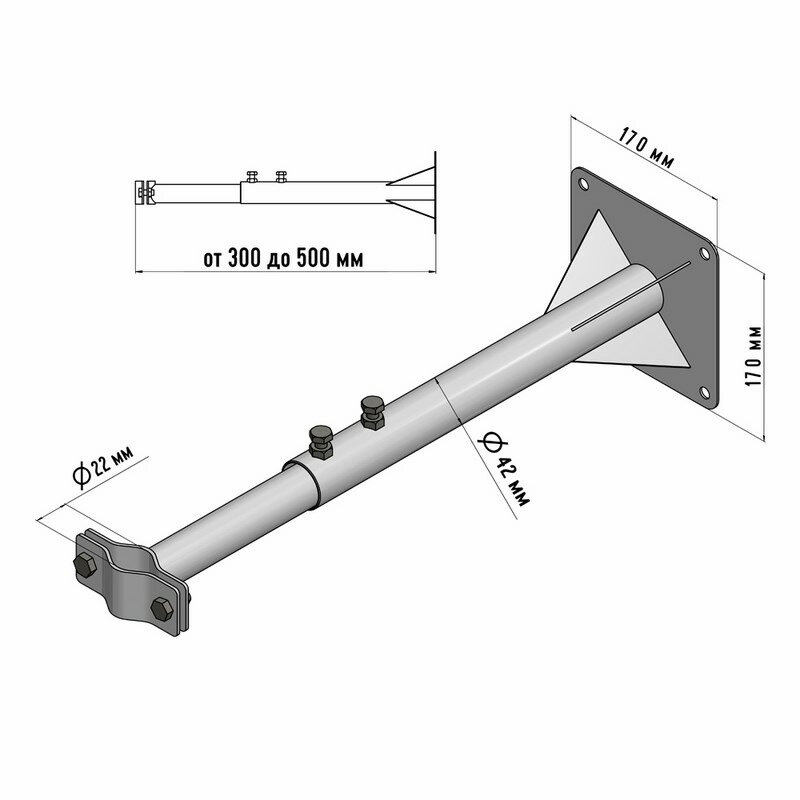 Кронштейн телескопический для крепления мачты антенны, вылет от стены 30-50 см