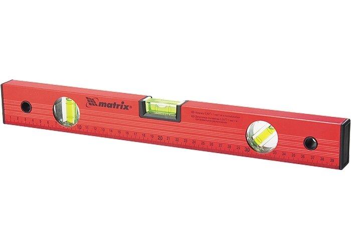 MATRIX Уровень алюминиевый, 1000 мм, 3 глазка, красный, линейка// 33229 интересное: