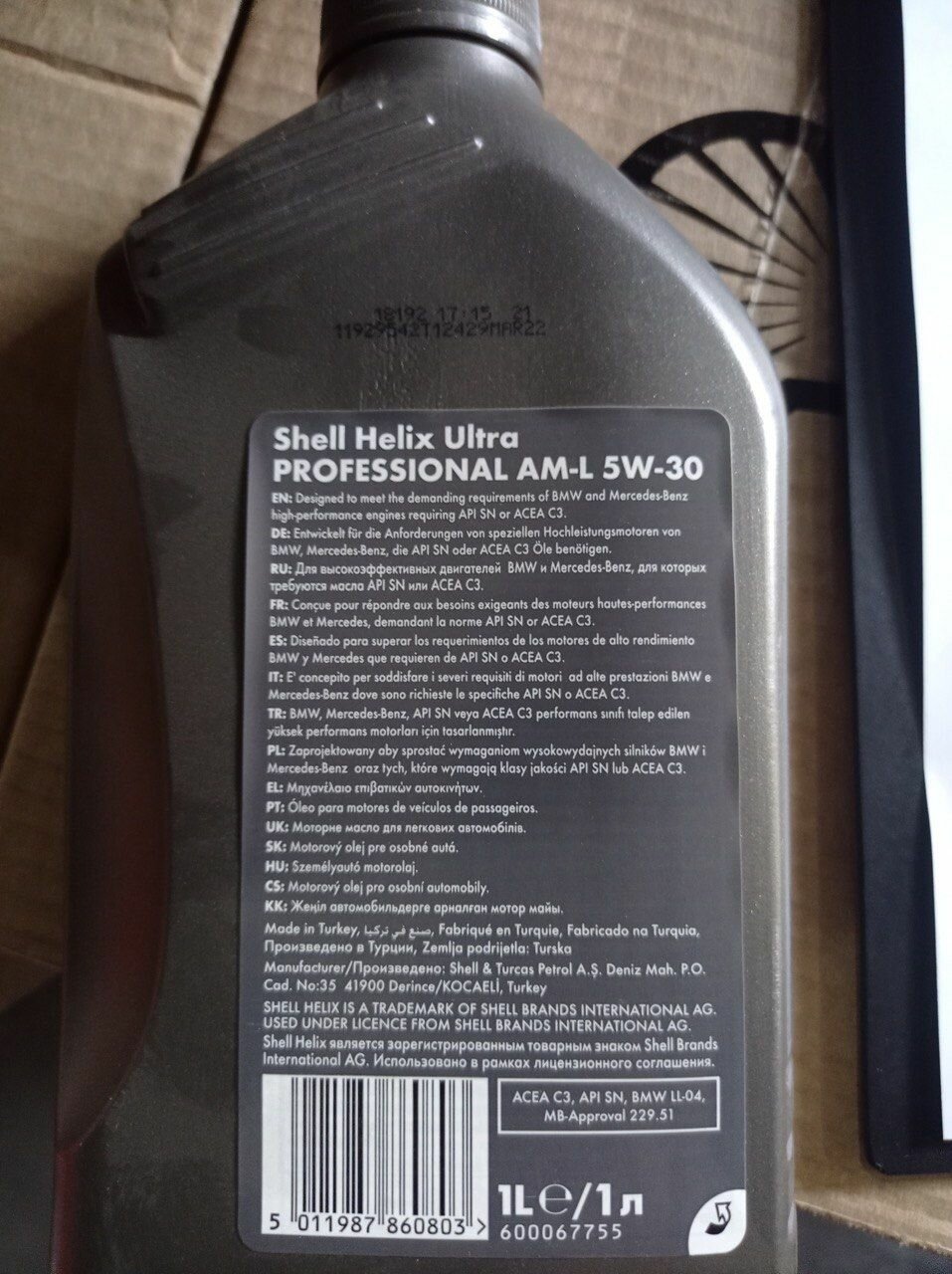 Синтетическое моторное масло SHELL Helix Ultra Professional AM-L 5W-30, 1 л, 1 кг