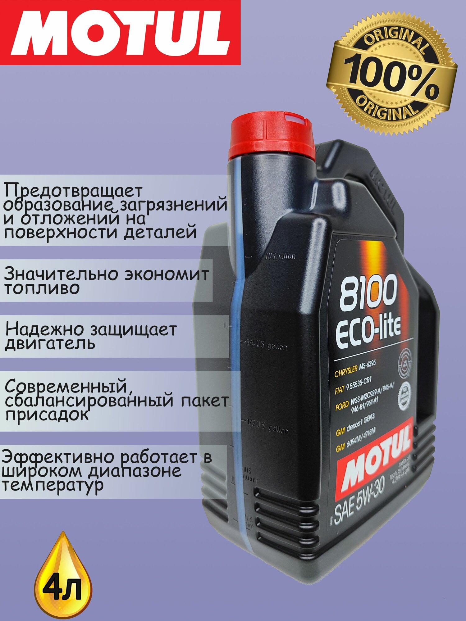 масло моторное motul 8100 eco-lite 5w-30 синтетическое 4 л 108213
