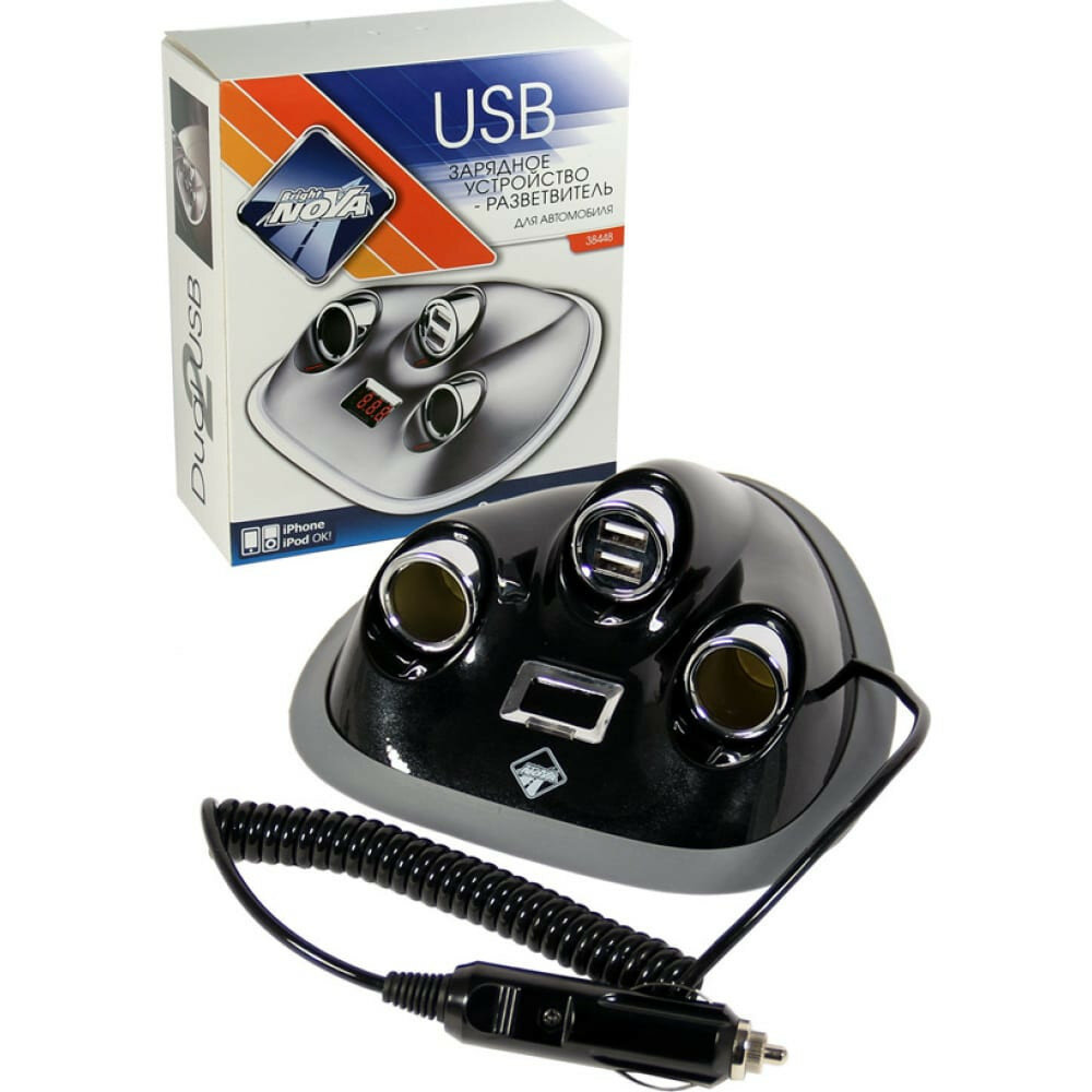 Разветвитель прикуривателя 2 гнезда+2USB-порта, 2100мА, Nova Bright-fusion