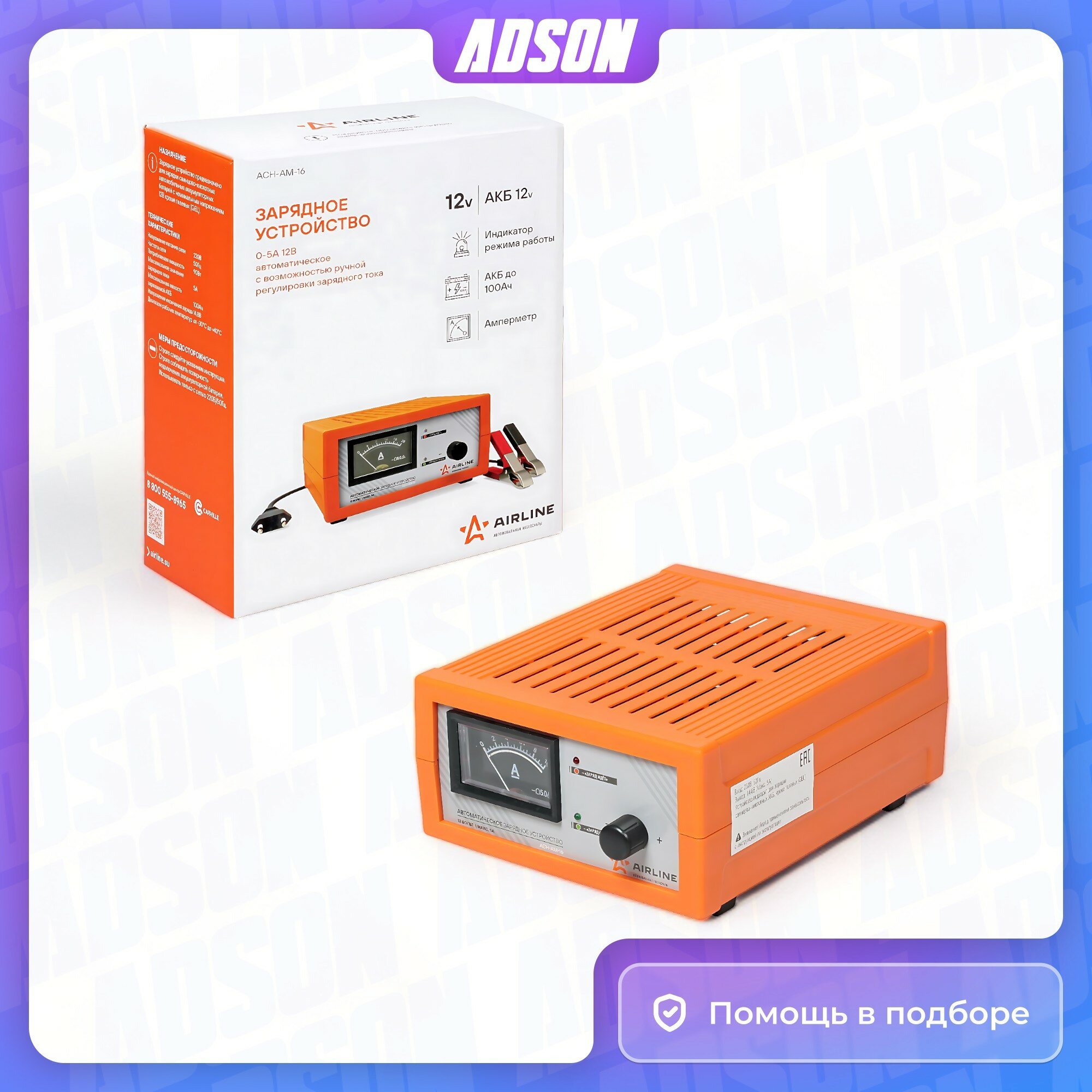 AIRLINE ACH-AM-16 (ACHAM16) зарядное устройство 0-5а 12в, амперметр, ручная регулировка зарядного