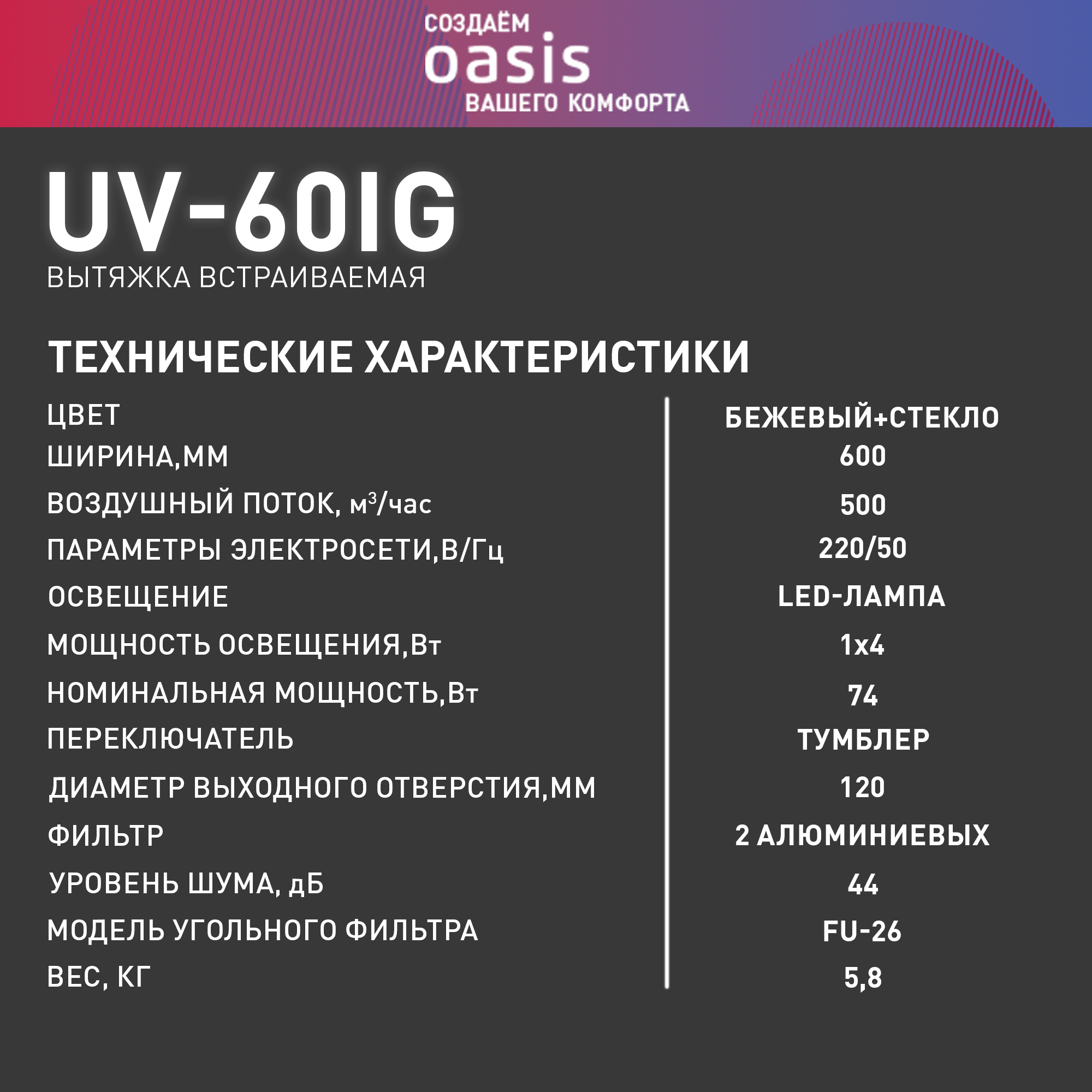 Вытяжка Oasis UV-60IG