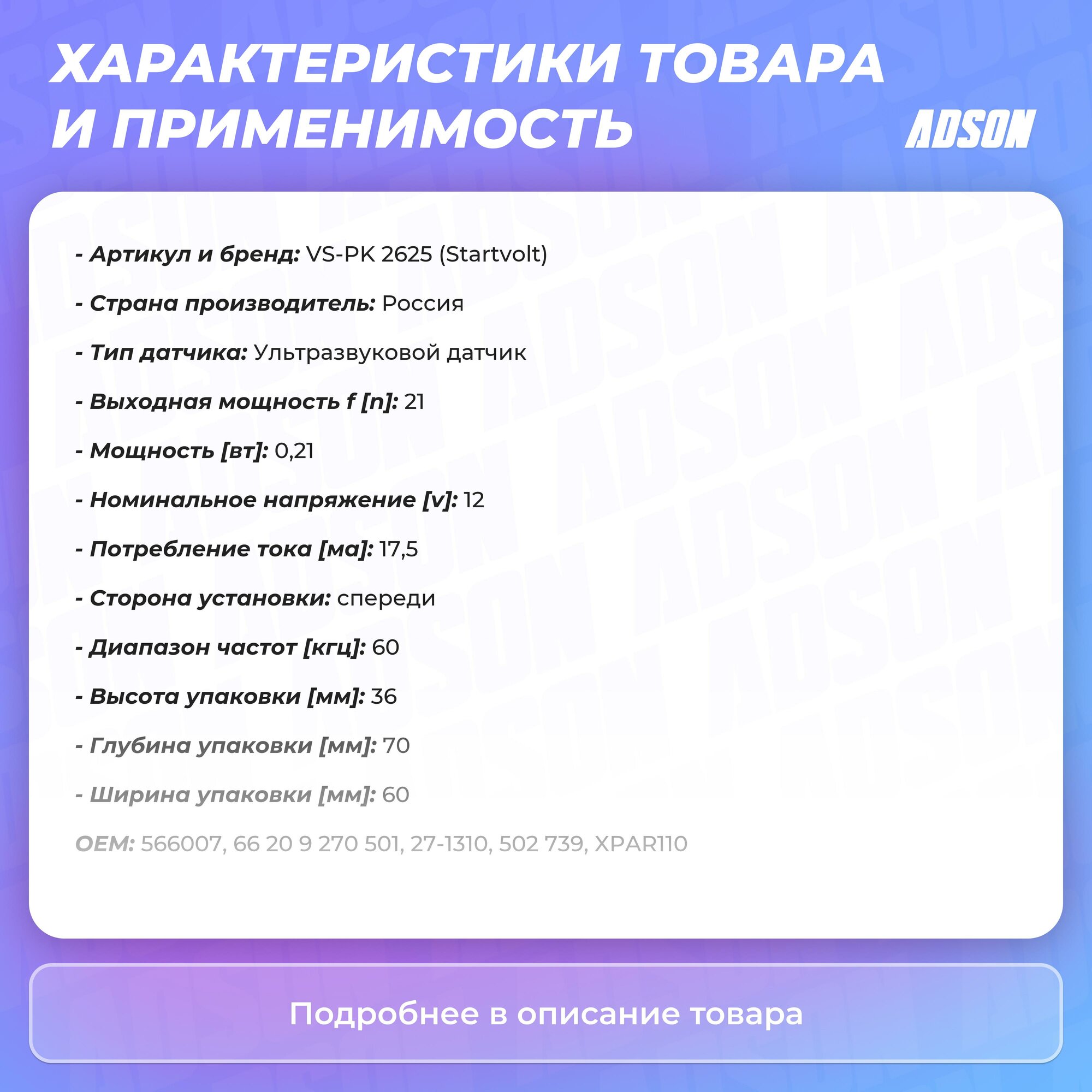 Датчик Парковки STARTVOLT арт. VS-PK 2625
