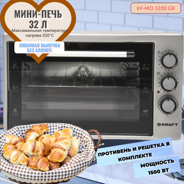 СохранитьМини печь KRAFT KF-MO 3200 GR, электрическая, 1500 Вт, объем 32 л, серый интересное: