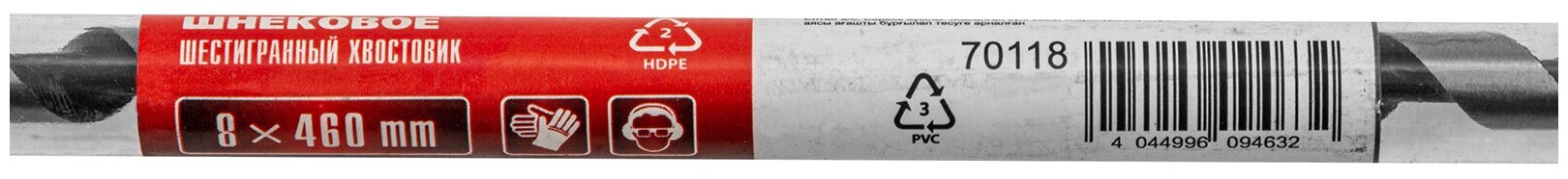 Сверло по дереву шнековое, шестигранный хвостовик, 8 х 460 мм