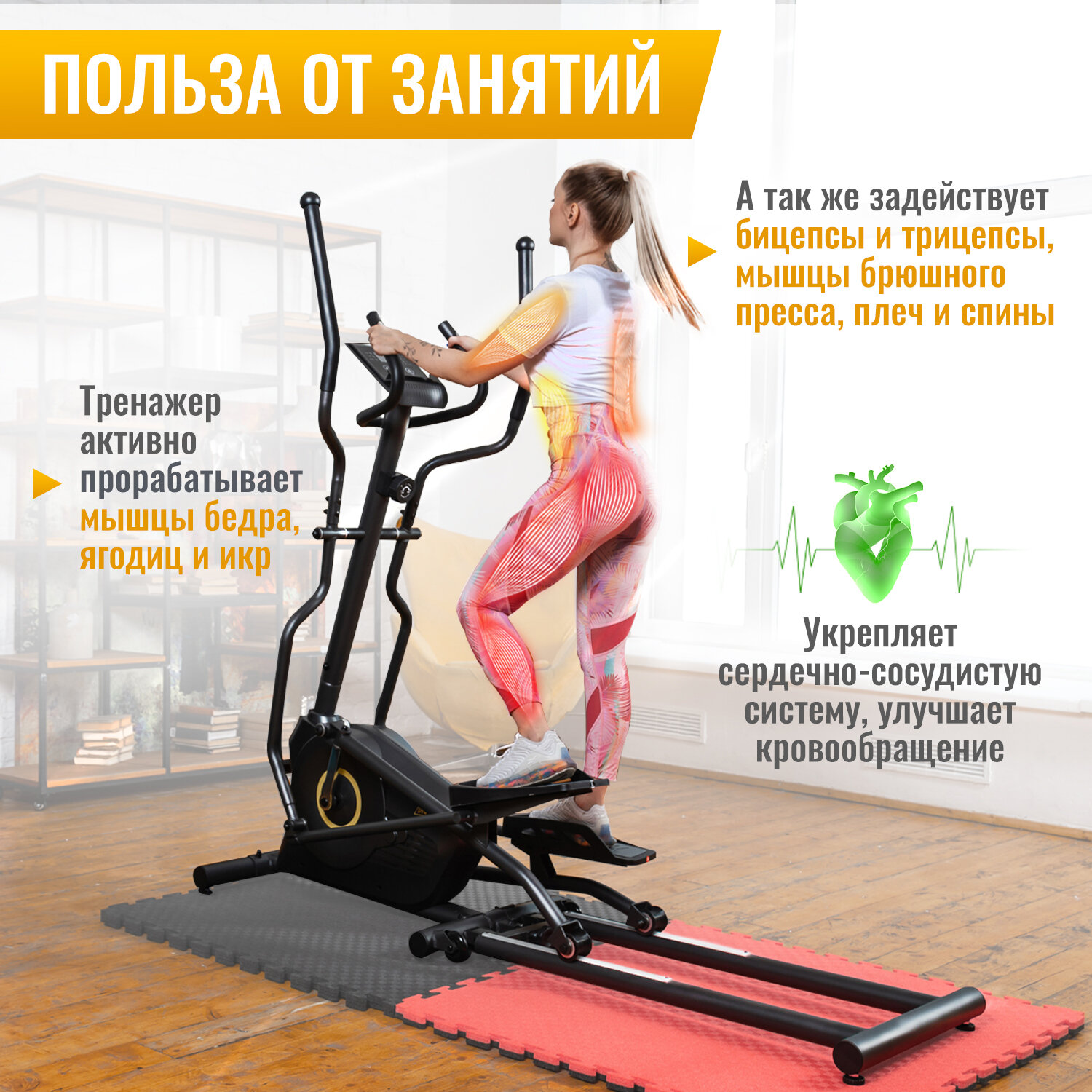 Эллиптический тренажер HyperFit Reisender U13W/3 в 1/Велотренажер/Степпет/Для дома/Для тренировок/Маховик 7 кг/магнитный