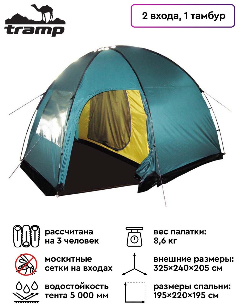 Палатка кемпинговая Tramp Bell 3 (V2) Green интересное: