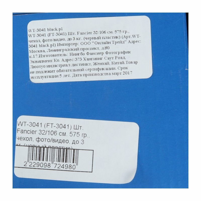 WT-3041 (ft-3041) Шт. Fancier 32/106 см. 575 гр., чехол, фото/видео, до 3 кг. (черный пластик) WT-30