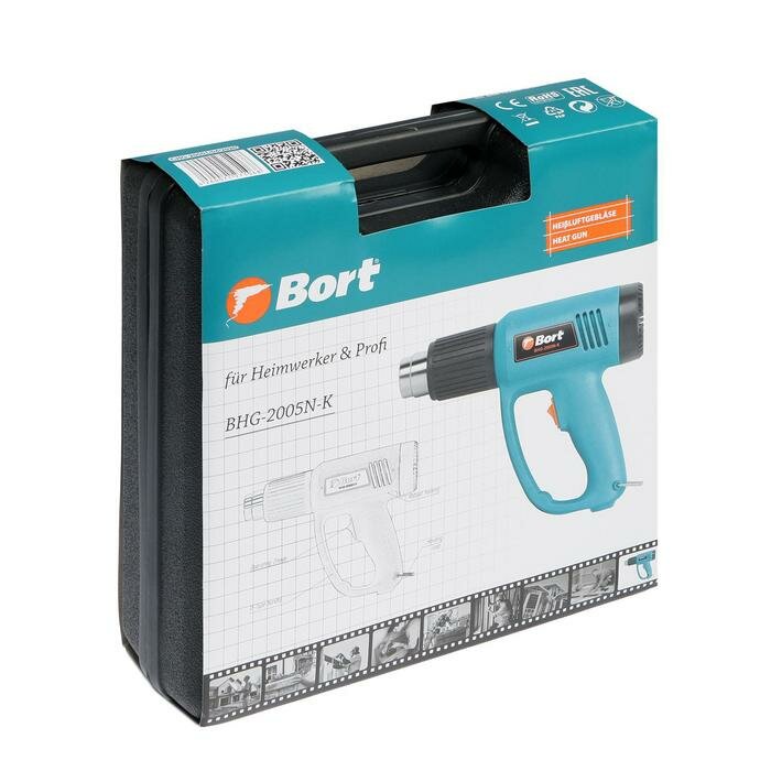 Фен технический Bort BHG-2005N-K, 2000 Вт, 450-600 С, 300-500 л/мин, защита от перегрева