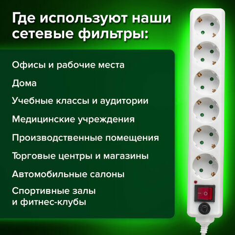 Ниже Вы можете прочитать отзывы на Комплект 5 шт, Сетевой фильтр SONNEN U-363, 6 розеток, с заземлением, выключатель, 10 А, 3 м, белый, 511426, ознакомится с подробными характеристиками, посмотреть интересные обзоры и фотографии на Комплект 5 шт, Сетевой фильтр SONNEN U-363, 6 розеток, с заземлением, выключатель, 10 А, 3 м, белый, 511426.