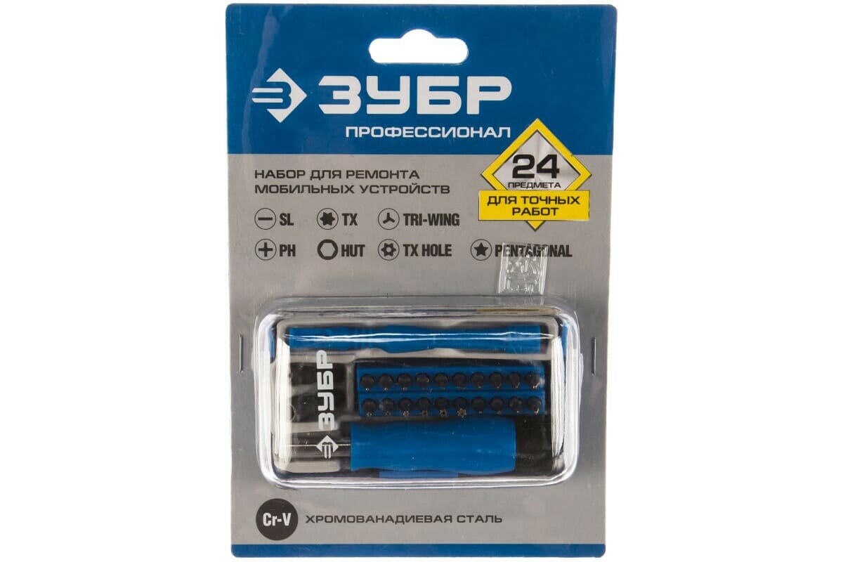 Отвертка с битами для точных работ и мобильных устройств 24 предм.,, ЗУБР 25648H24 (1 шт.)