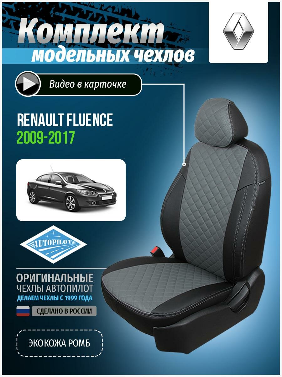 Чехлы для Renault Megan 3, Fluence 2009-2017 Автопилот Серый Экокожа re-fl-fl-chese-e