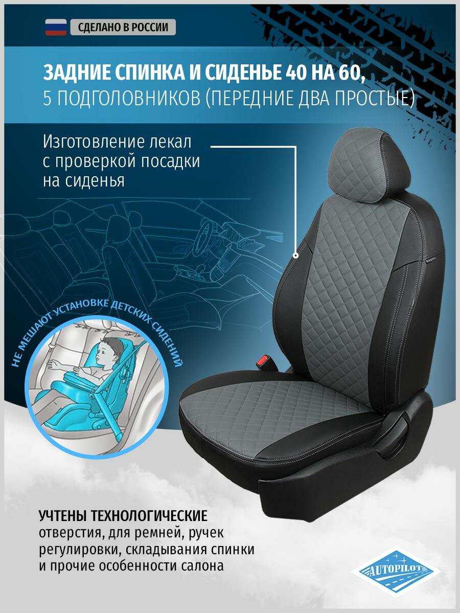 Купить Чехлы на сиденья "АВТОПИЛОТ" из экокожи ромб для Renault Fluence (Задняя спинка делится на две части, 40/60%) с 09г./Megane III с 10г. Серый, Черный. re-fl-fl-seche-r