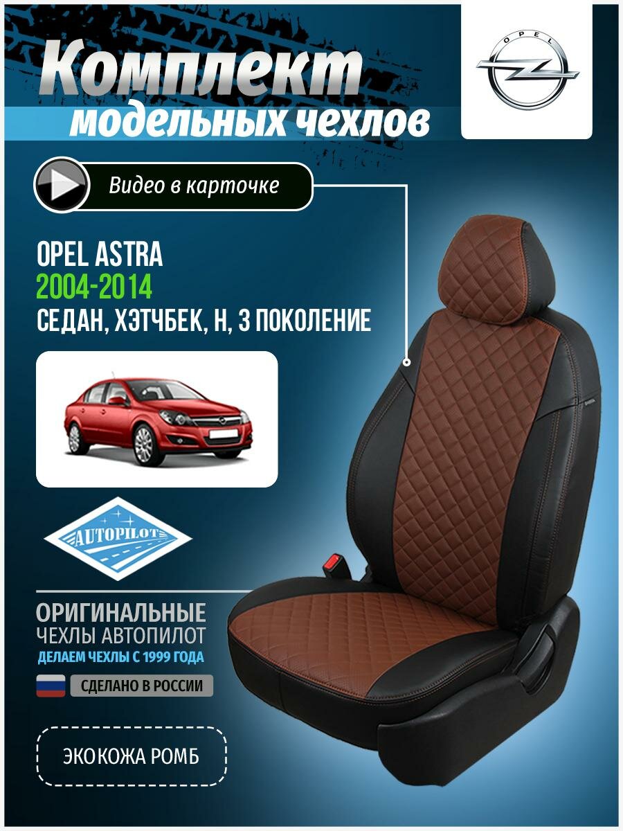 Чехлы для Opel Astra 3 H 2004-2014 Автопилот Темно-Коричневый Экокожа с ромбом op-as-khs-chetk-r