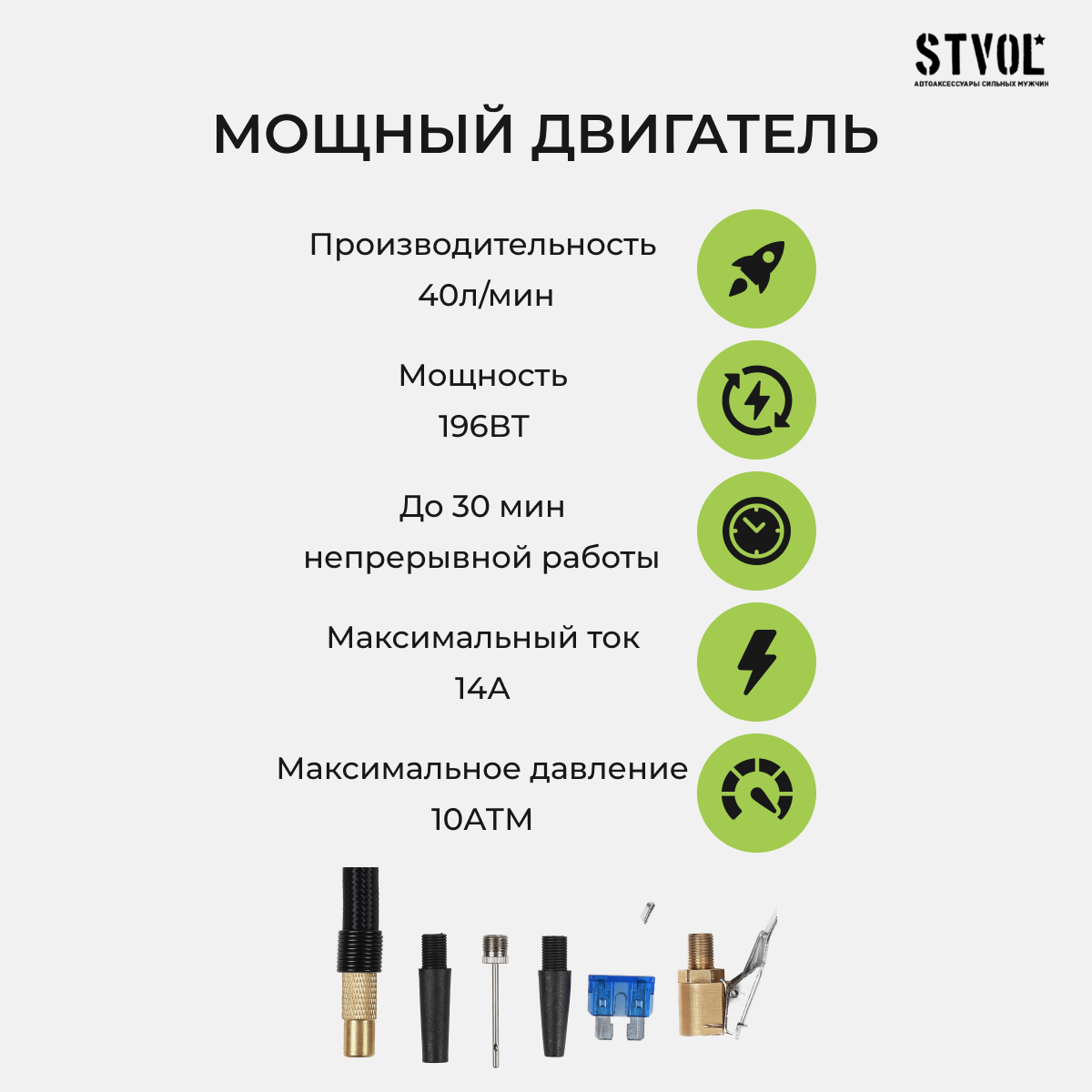Компрессор автомобильный STVOL Q3, 40 л/мин, 10 А
