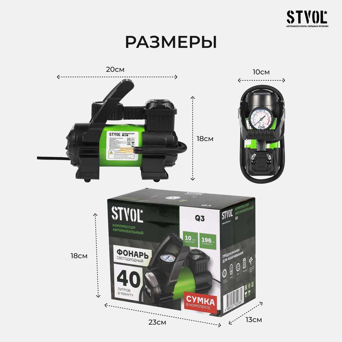 СохранитьКомпрессор Автомобильный Q3 Stvol (40 Л/Мин 10А) STVOL арт. q3 интересное: