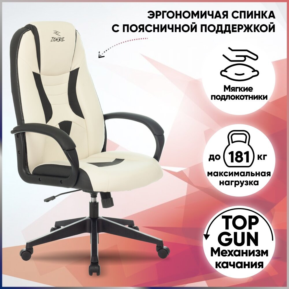 Кресло компьютерное игровое геймерское Zombie 8 на колесиках, высокой спинкой, подлокотниками, пластиковая крестовина, экокожа