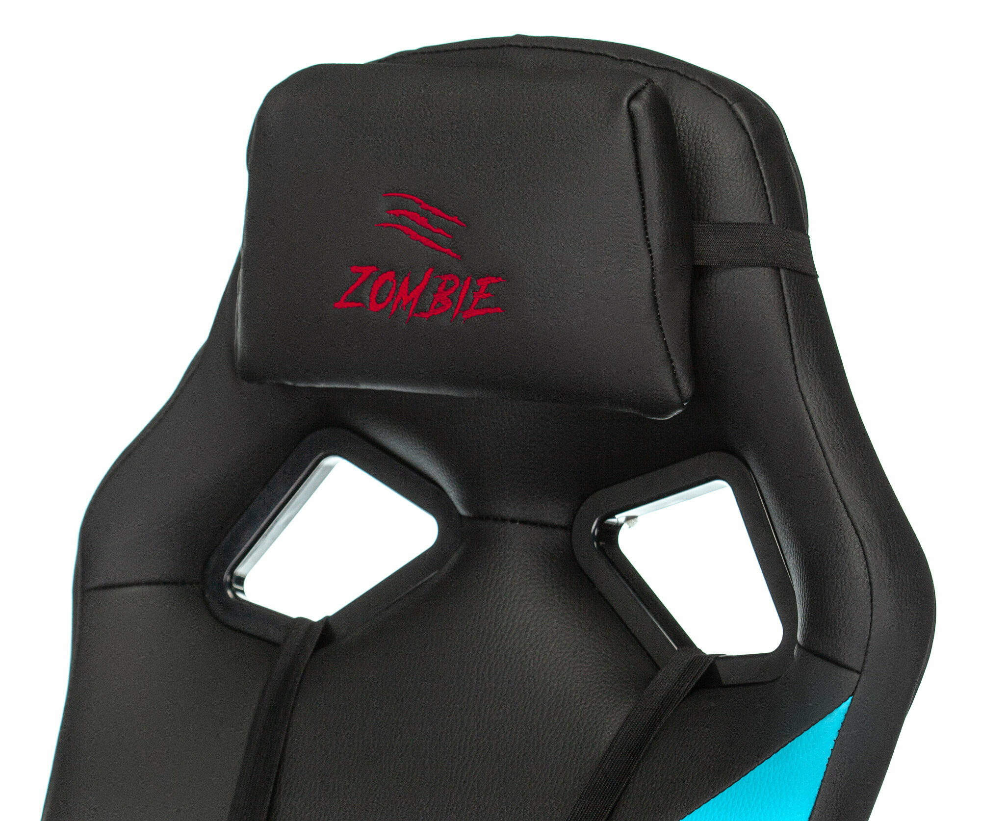 Кресло игровое Zombie DRIVER черный/голубой эко.кожа с подголововником крестовина пластик