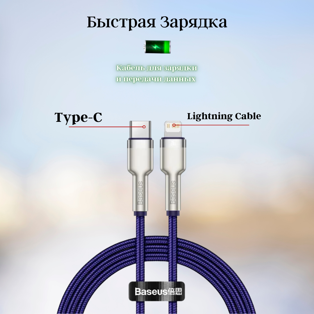 СохранитьКабель USB-C BASEUS Cafule Series Metal, Type-C - Lightning, 20W, 2 м, Фиолетовый интересное: