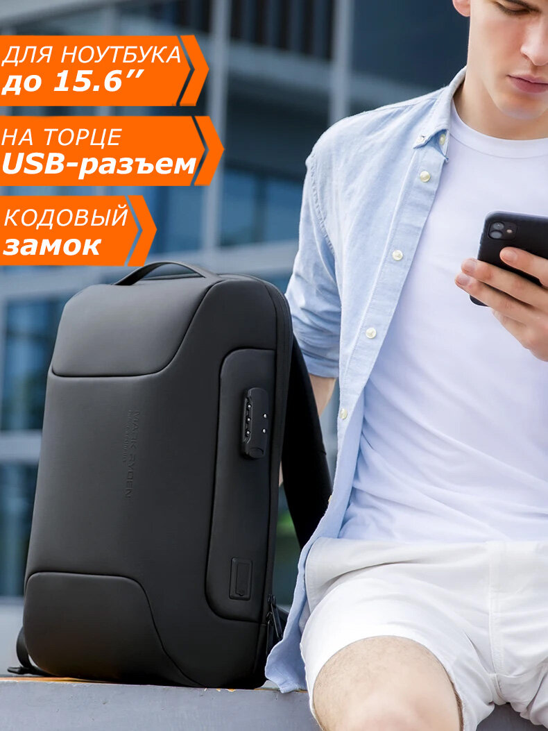 Рюкзак мужской городской вместительный 21л для ноутбука 15.6 с кодовым замком Mark Ryden MR9116 Черный водонепроницаемый с USB зарядкой подростковый
