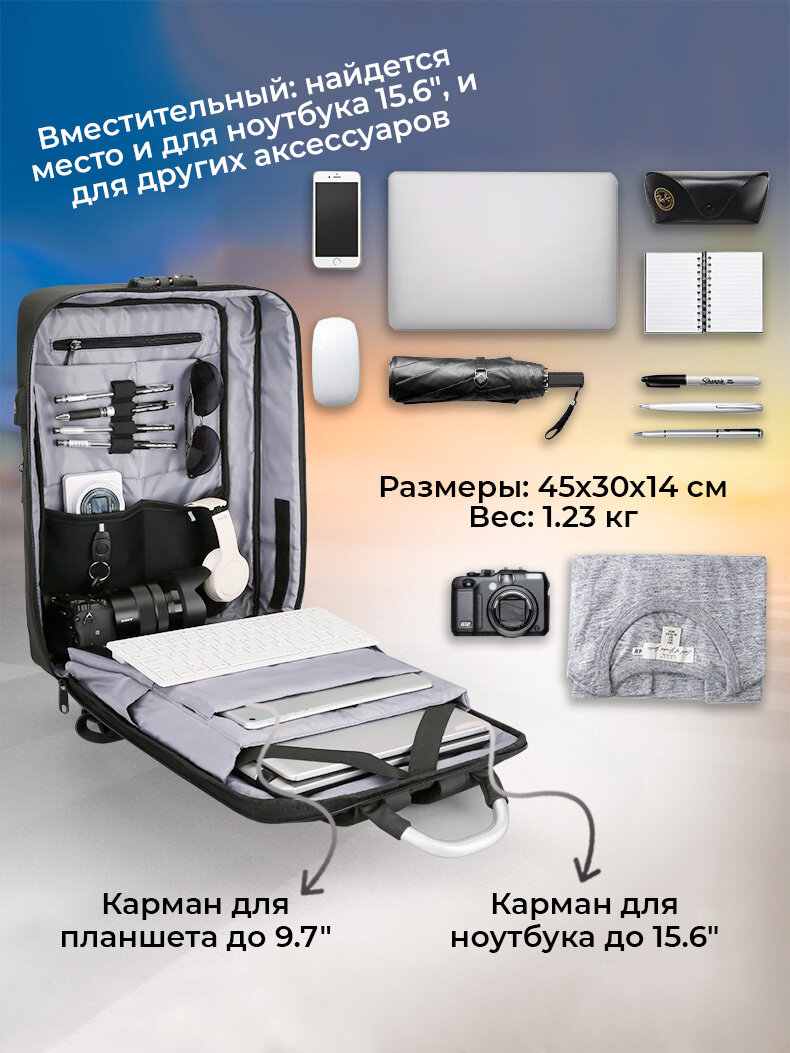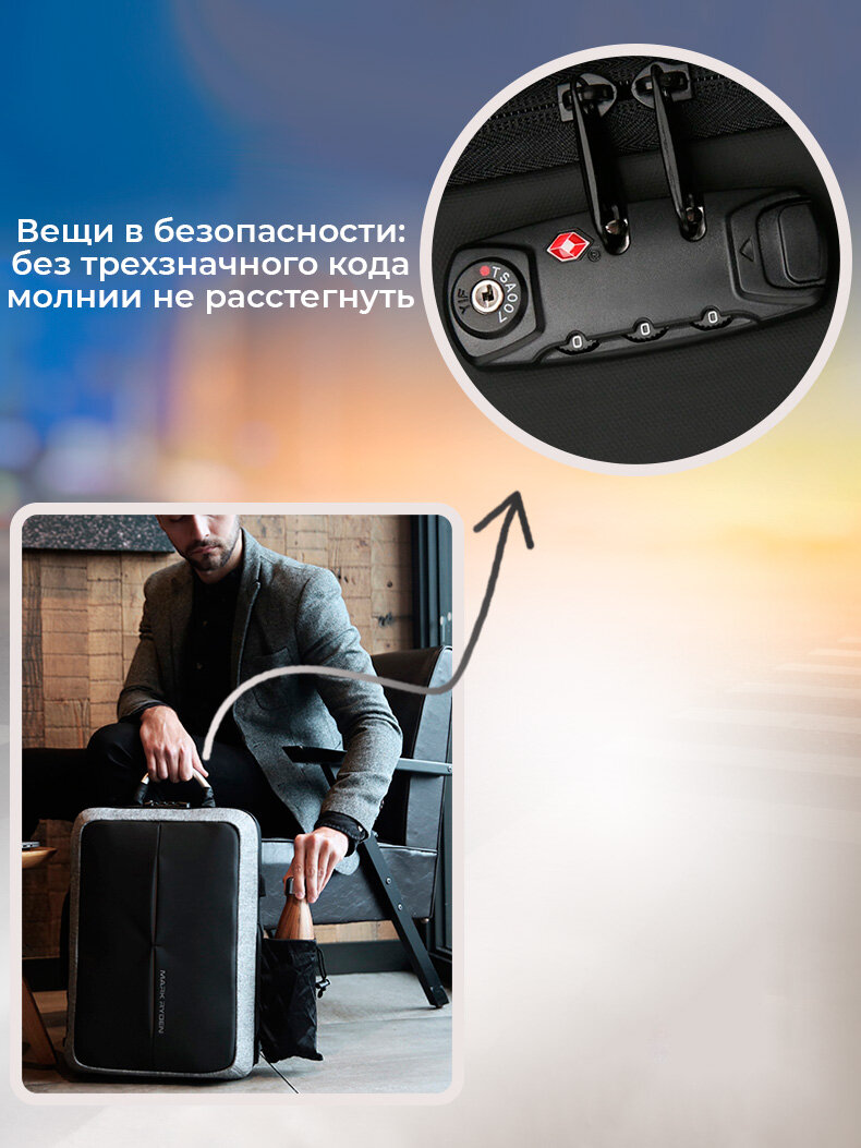 СохранитьРюкзак-сумка трансформер мужской городской дорожный с кодовым замком Mark Ryden 19л для ноутбука 15.6", водонепроницаемый, с USB зарядкой, цвет серый интересное: