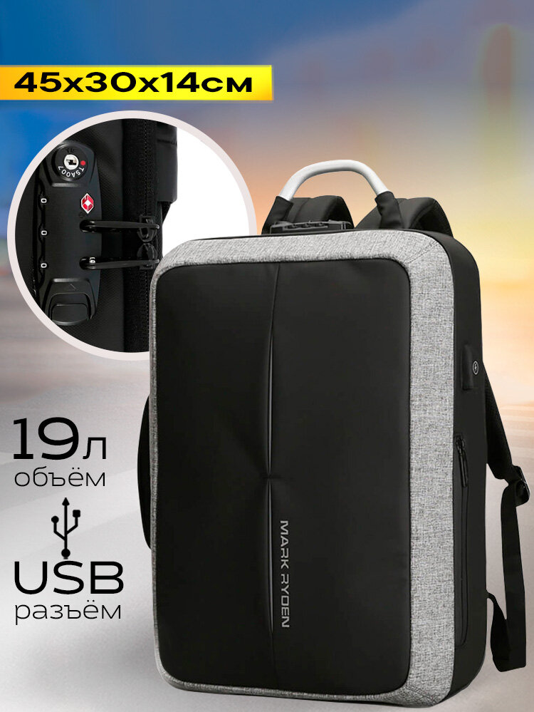 Купить Рюкзак-сумка трансформер мужской городской дорожный с кодовым замком Mark Ryden 19л для ноутбука 15.6", водонепроницаемый, с USB зарядкой, цвет серый