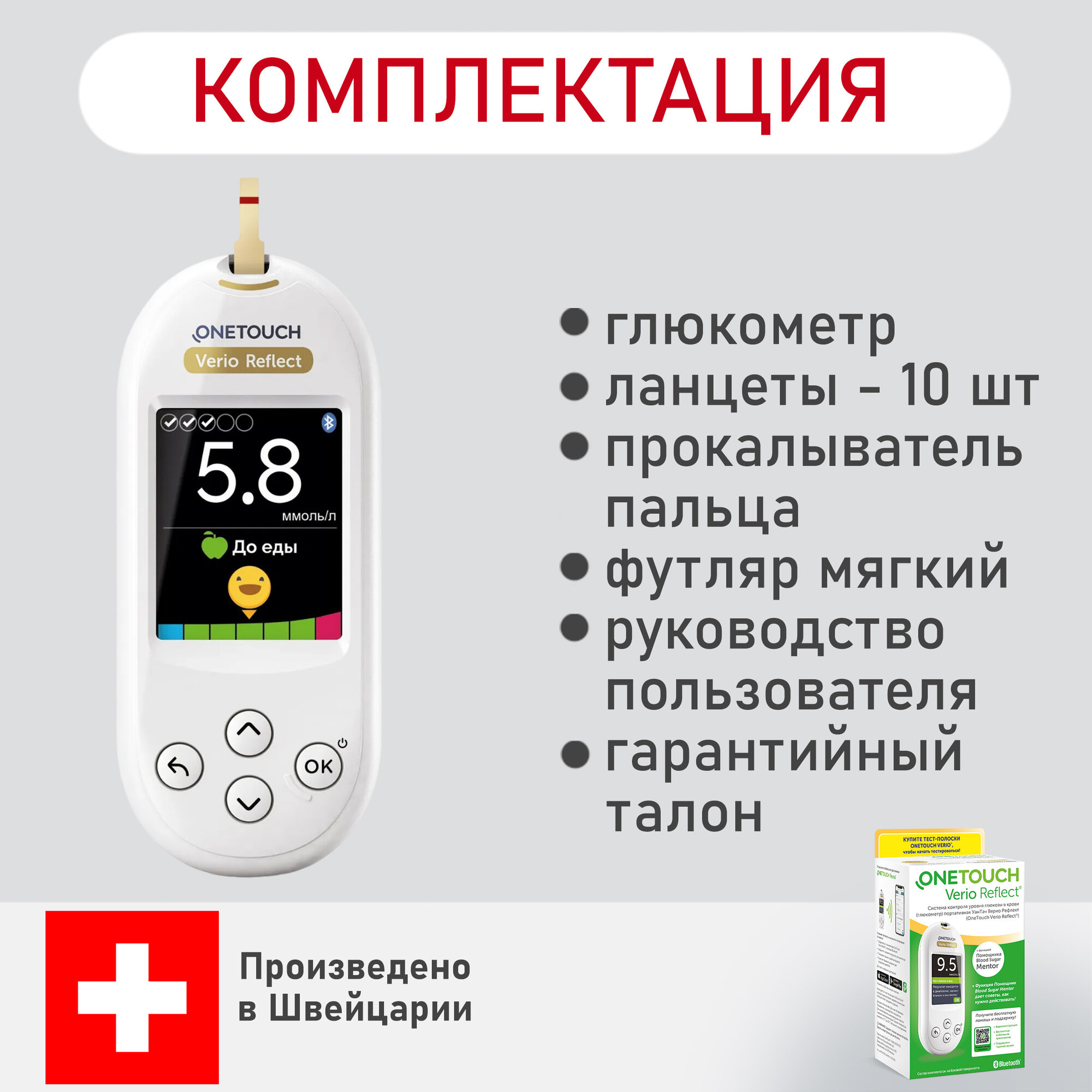 СохранитьГлюкометр OneTouch Verio Reflect+Тест-полоски УанТач Верио (OneTouch Verio) №100 интересное: