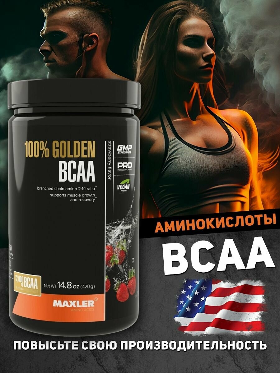 Аминокислоты Maxler 100% Golden BCAA Клубника, 210г, БЦАА в соотношении 2:1:1, В форме порошка, 30 порций