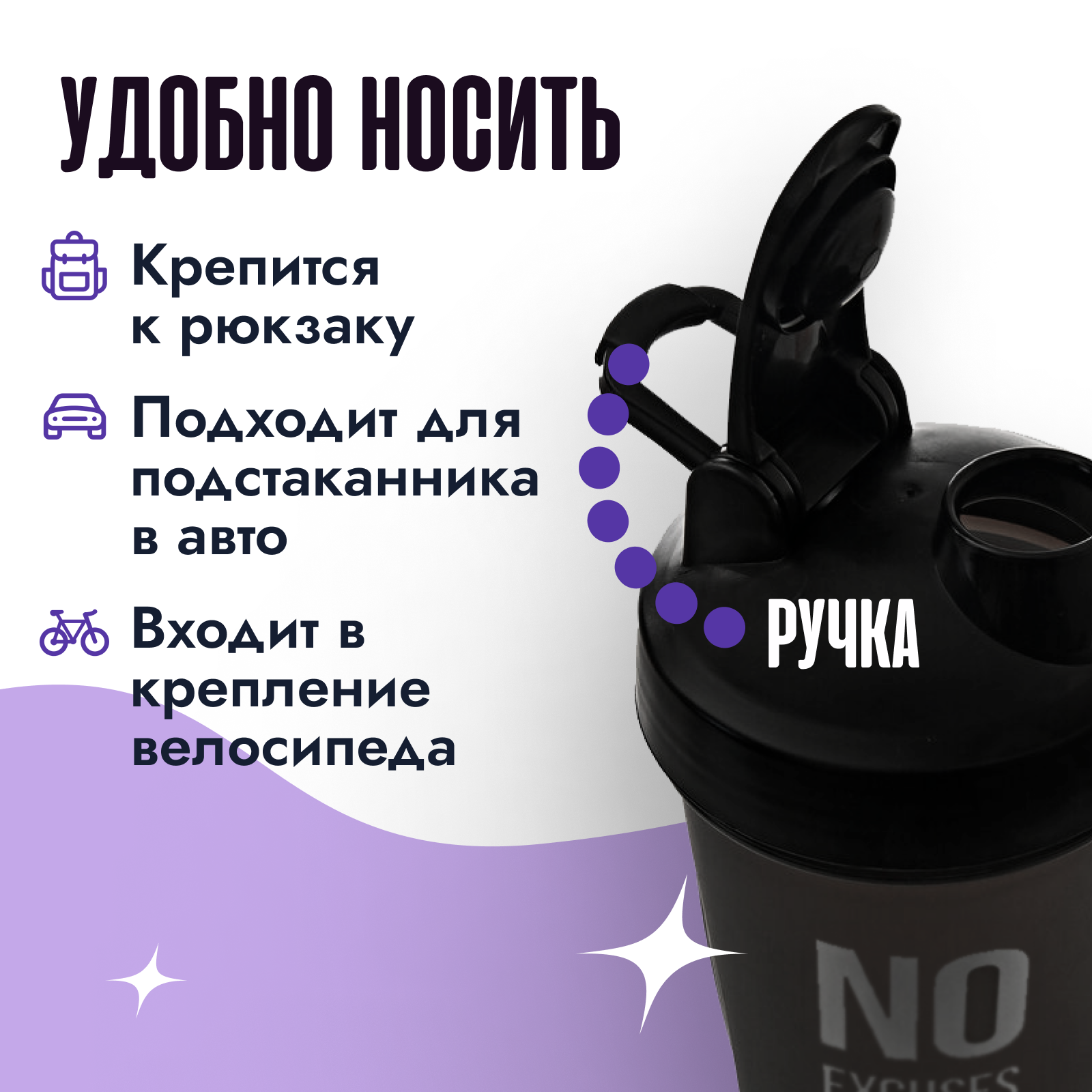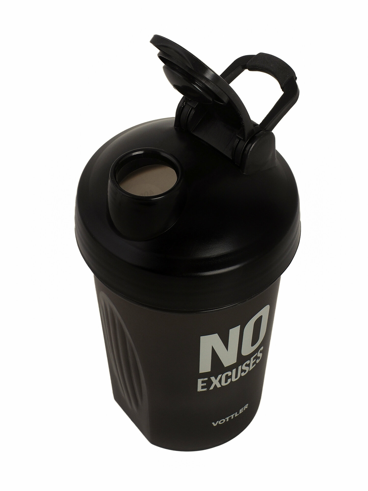 Шейкер бутылка спортивный VOTTLER 500 мл No excuses черный с шариком