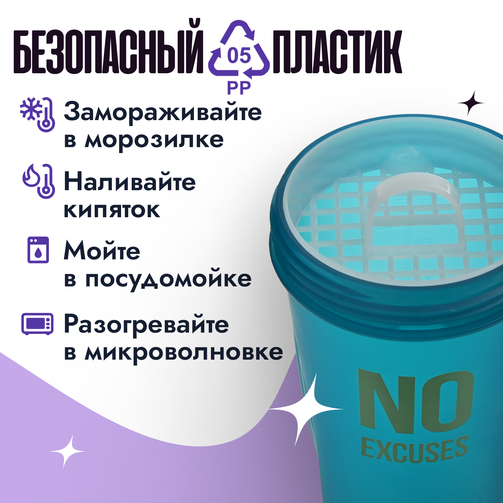 | Плюсы: | Отличный шейкер, пластиком не воняет |