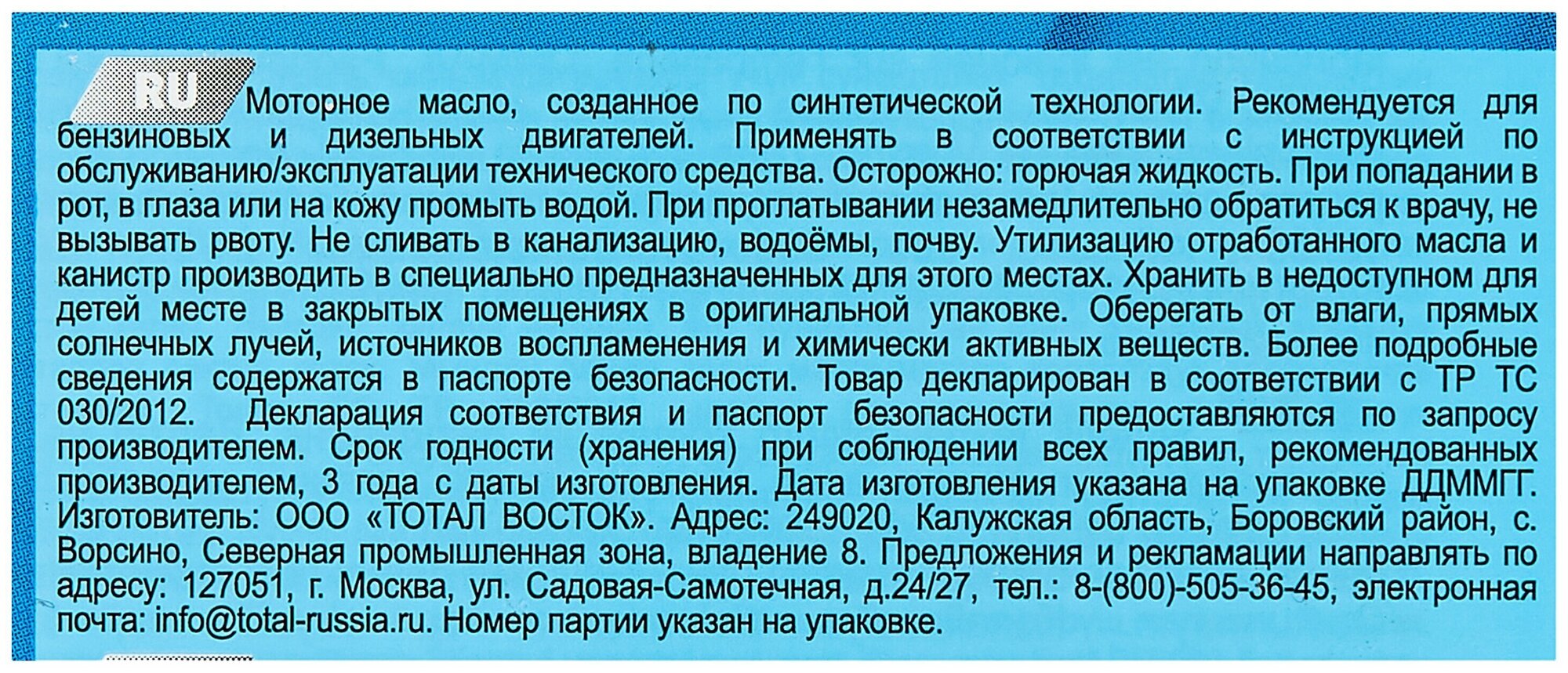 | Отзыв: | Масло норм., не "паленое", судя по канистре, полиграфии и месту розлива в РФ, со всеми реквизитами об обратной связи |