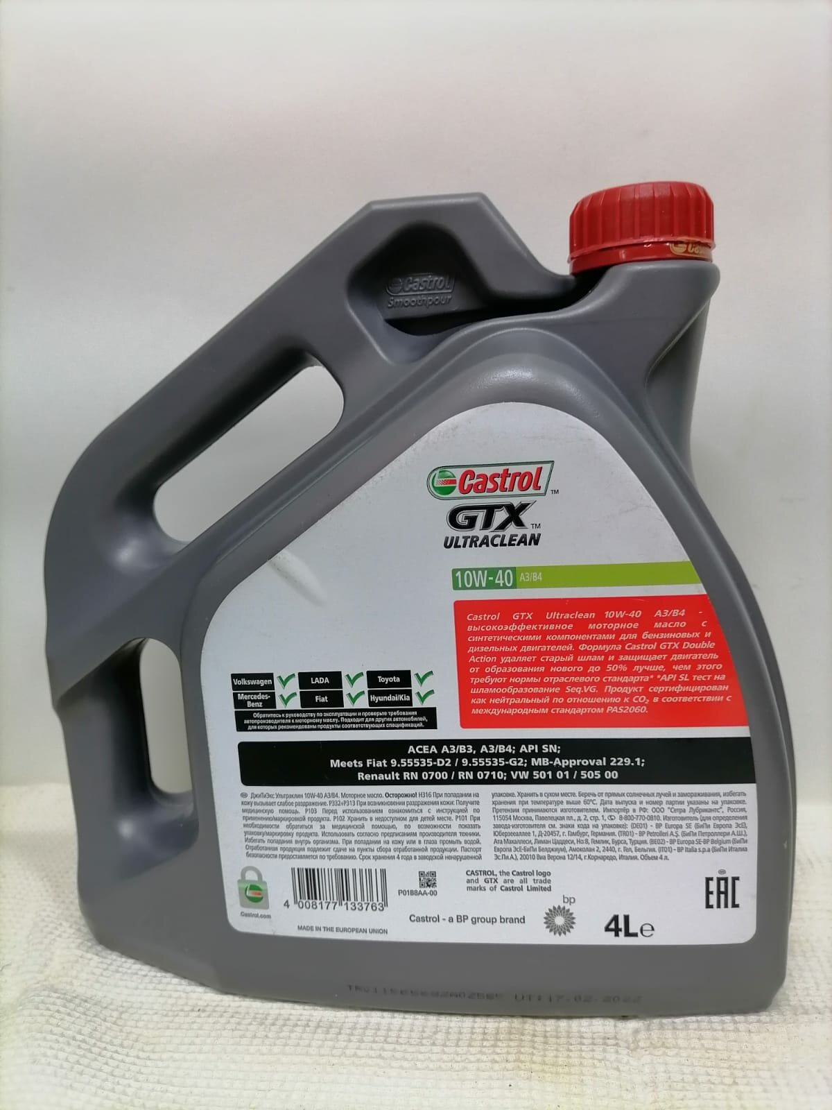 CASTROL 15A4E0 Castrol 10W40 (4L) GTX ULTRACLEAN_масло мот.! \ACEA A3/B3, A3/B4, API SL/CF, Fiat 9.55535-D2/G3 1шт