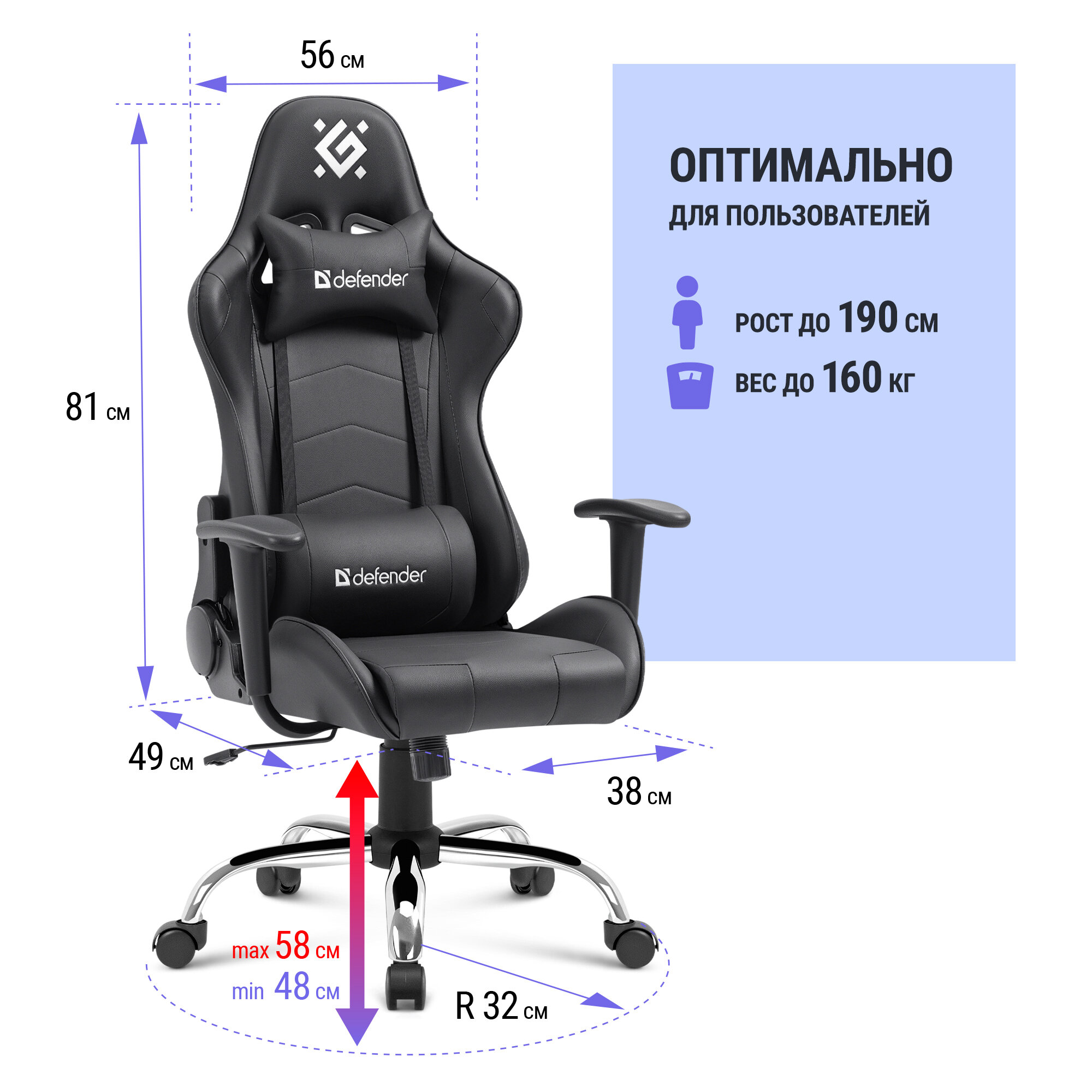 Игровое кресло Defender Azgard, черный, полиуретан 60 мм