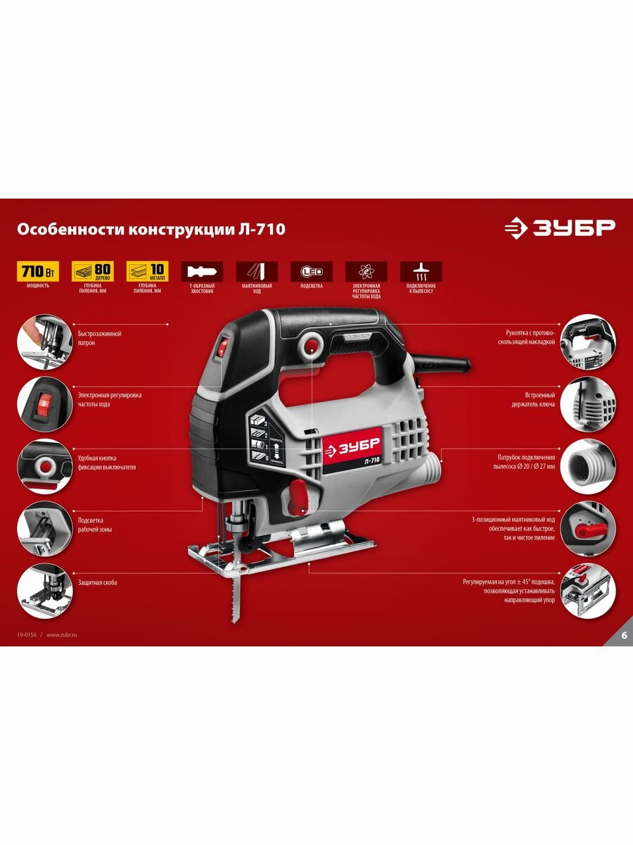 Электролобзик Зубр Лобзик 700Вт 3000ходов/мин от электросети (кейс в комплекте)