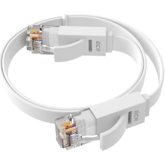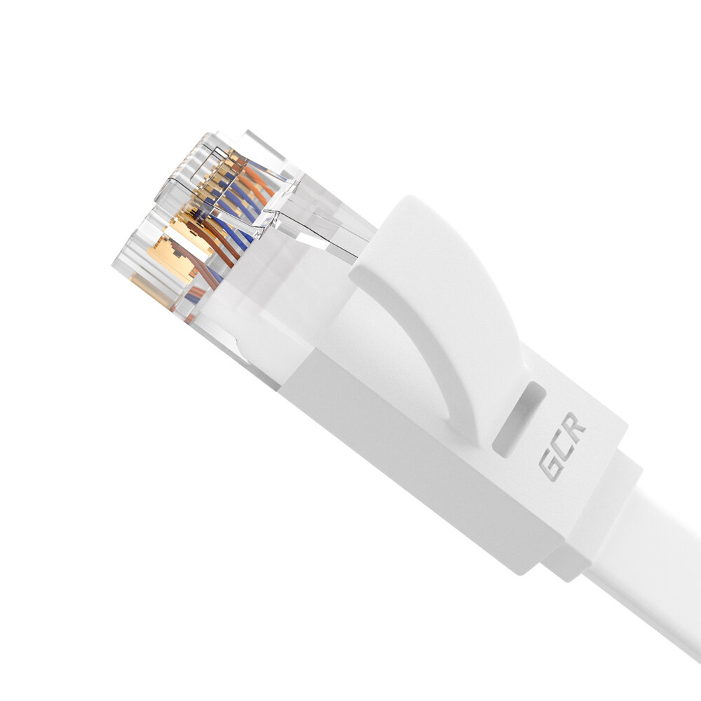 Патч-корд 20м GCR PROF плоский UTP cat.6 10 Гбит/с RJ45 LAN компьютерный кабель для интернета медный контакты 24K GOLD (GCR-LNC62) белый