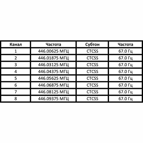 | Минусы: | Станции настроены на неразрешенный в РФ диапазон FRS |