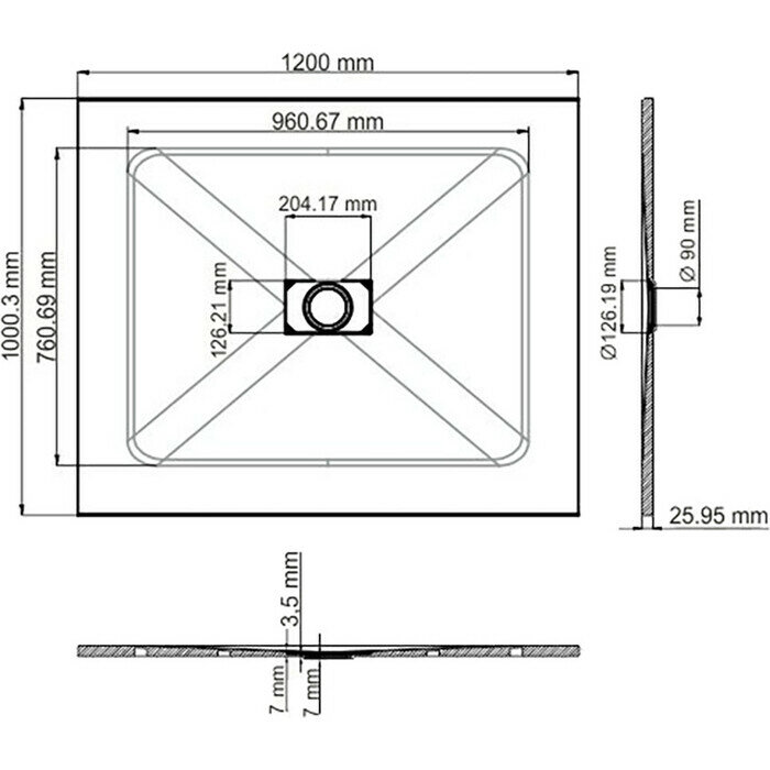 Душевой поддон из стеклопластика WasserKRAFT Elbe 74T10, 120х2,6х100 см