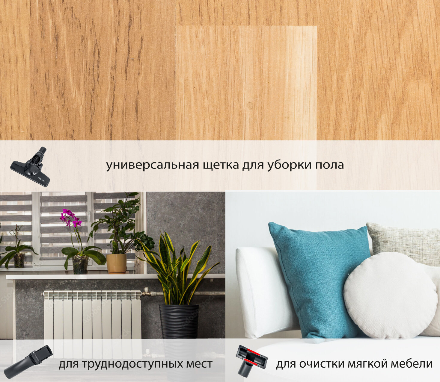 | Минусы: | Шнур не удобный.наматывать на пылесос нужно. |