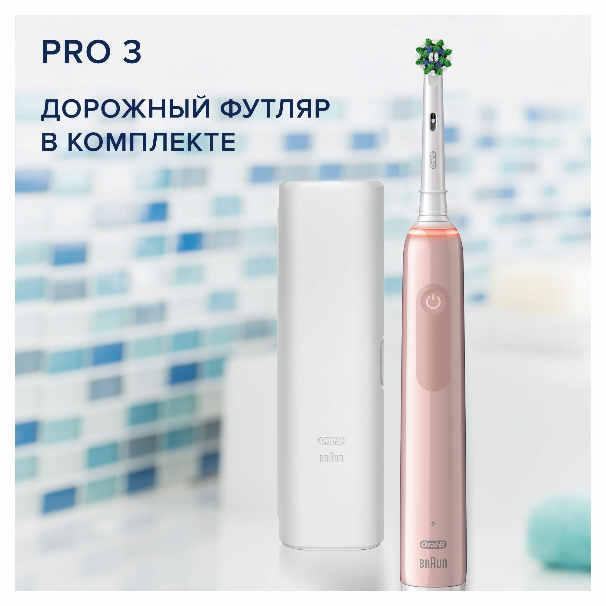 Электрическая зубная щетка Oral-B Pro 3 3500 + Дорожный футляр, розовый