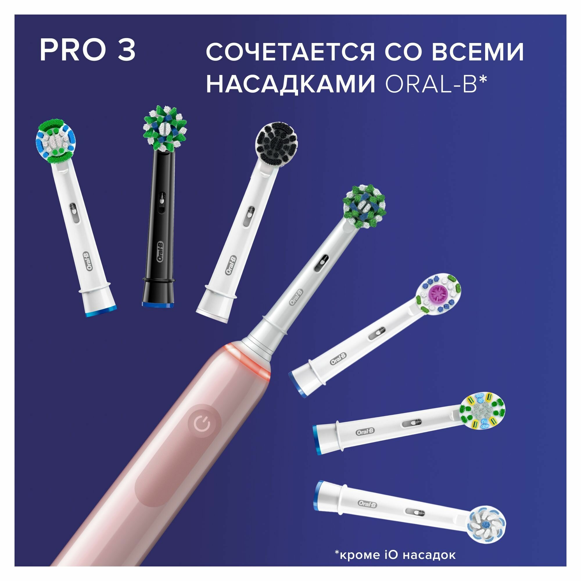 | Минусы: | Новые модели. в погоне за похожестью на топовую версию серии iO, стали толстенькие и скользкие - держать в руке стало намного менее удобно. Щетка при намокании скользит и плывет в руке. В комплекте только 1 насадка. Футляр кривоватый и простоватый. Внутри место только на 2 насадки. |