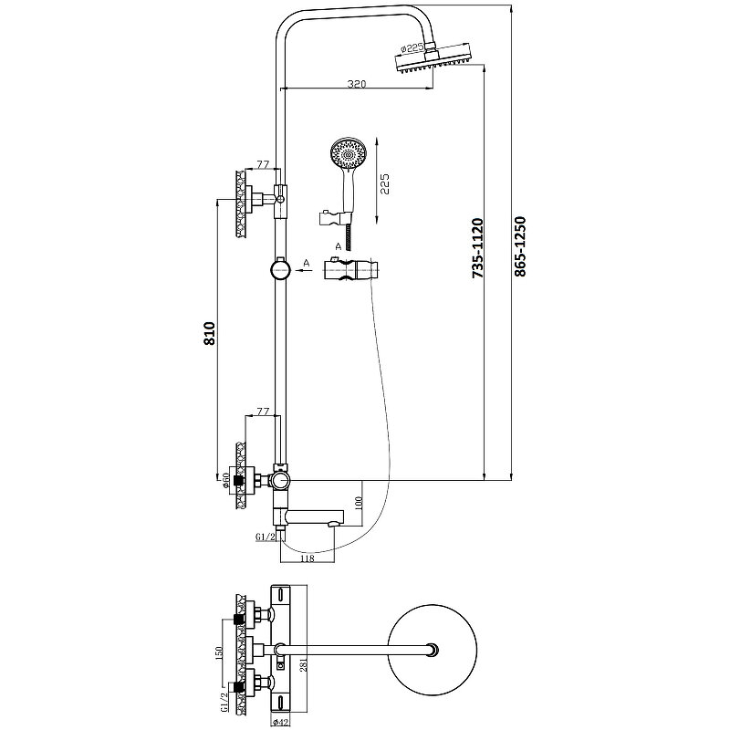 Душевая стойка Orange Thermo T02S3-911b, чёрный