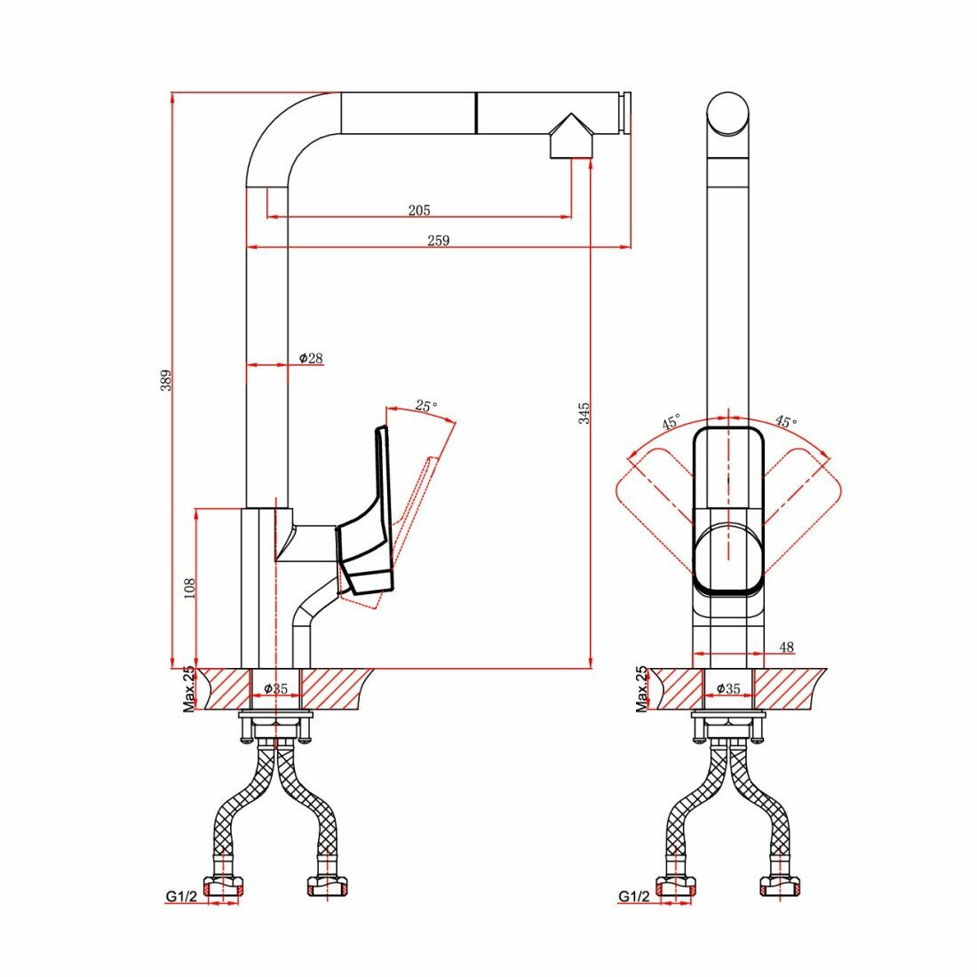 | Высота излива | 345 мм / 389 мм |