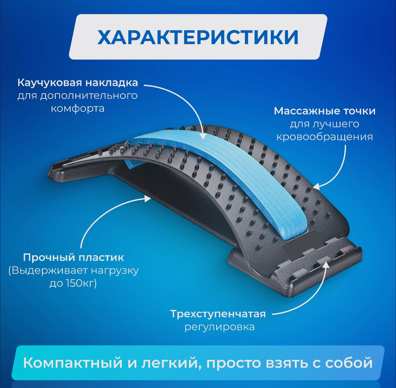Компактный, удобный в использовании. Нужно привыкнуть и дальше пойдет лучше. Спина стала меньше болеть. Сын иногда тоже просит воспользоваться. Говорит что удобно и постепенно идёт выпрямление спины.