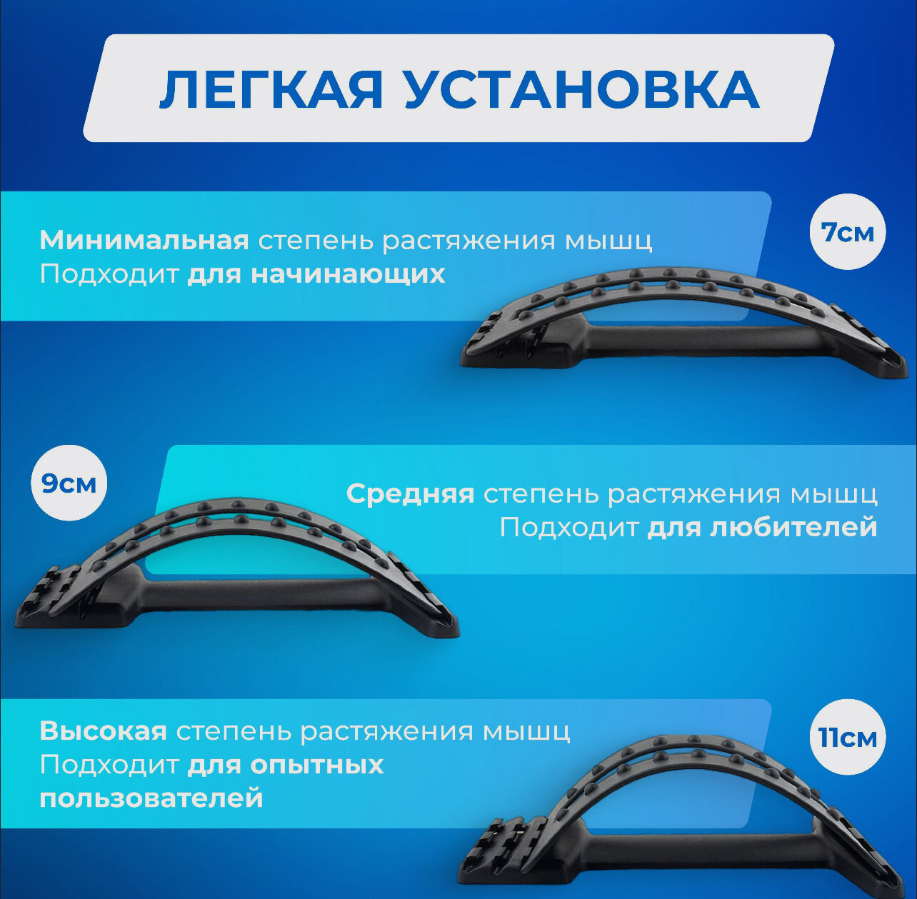 Основное достоинство устройства - мостик удивительно эффективно снимает спастические боли в спине, чего не делает иногда даже массаж.