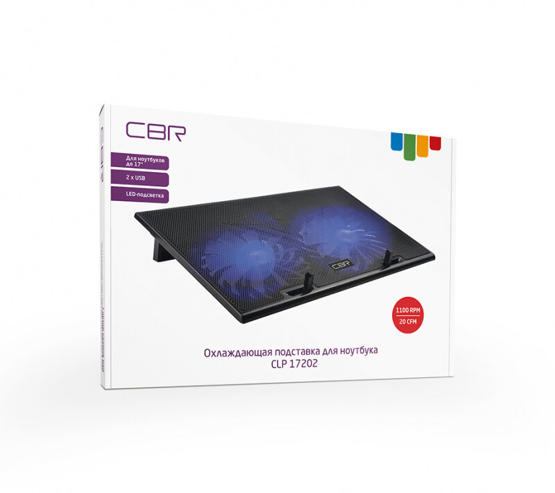 Cbr Аксессуар к ноутбуку CLP 17202, Подставка для ноутбука до 17", 390x270x25 мм, с охлаждением, 2xUSB, вентиляторы 2х150 мм, 20 CFM, LED-подсветка,