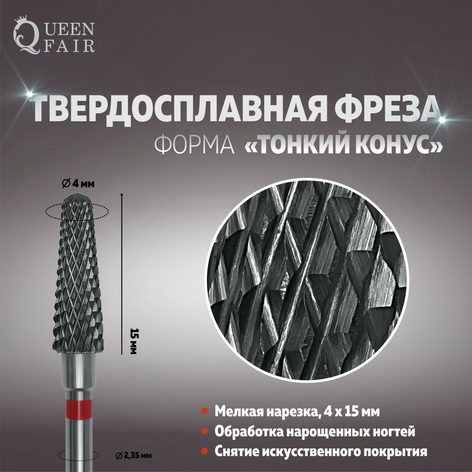 Queen fair Фреза твердосплавная для маникюра "Тонкий конус", мелкая нарезка, 4 × 15 мм