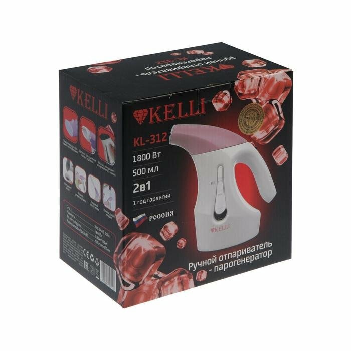Отпариватель KELLI KL-312, ручной, 1800 Вт, 500 мл, насадка чайник, бело-розовый