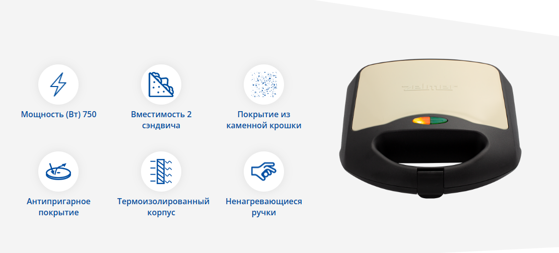 Сэндвич-тостер Zelmer ZSM7861 Black-Cream интересное: