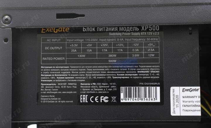 Корпус ExeGate 500W Black (XP-332UC-XP500)